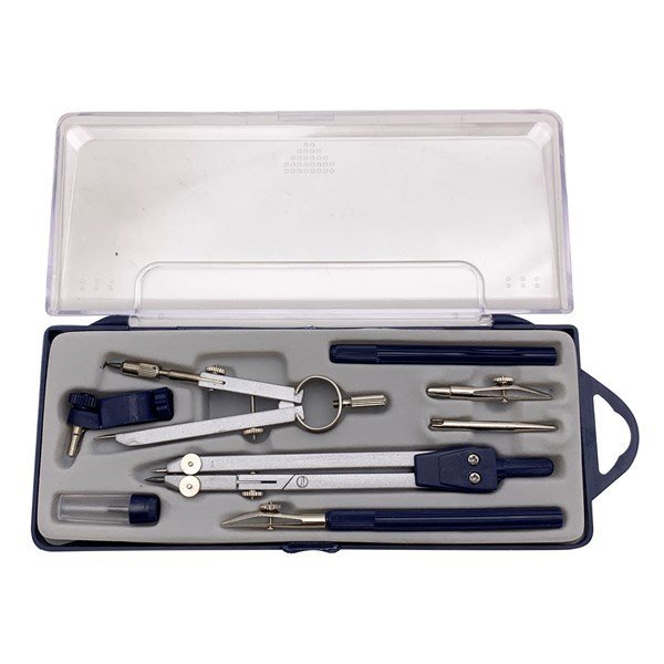 Este set de 2 compases es perfecto para estudiantes, artistas y profesionales que buscan la perfección en cada trazo. Incluye 1 compás de precisión de metal, un compás clásico de metal, grafos y accesorios Presentación en caja. Medidas: 18x8cm.