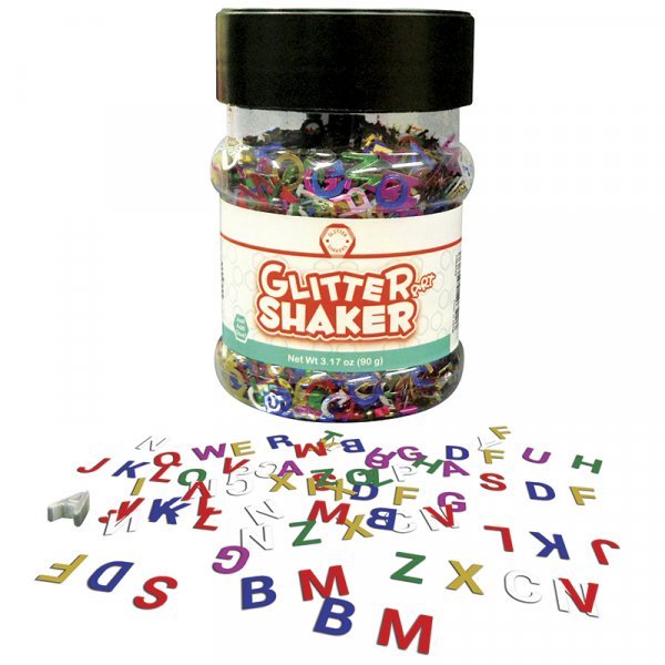 pote de confeti brillante con forma de letras ideal pata decoraciones y manualidades.