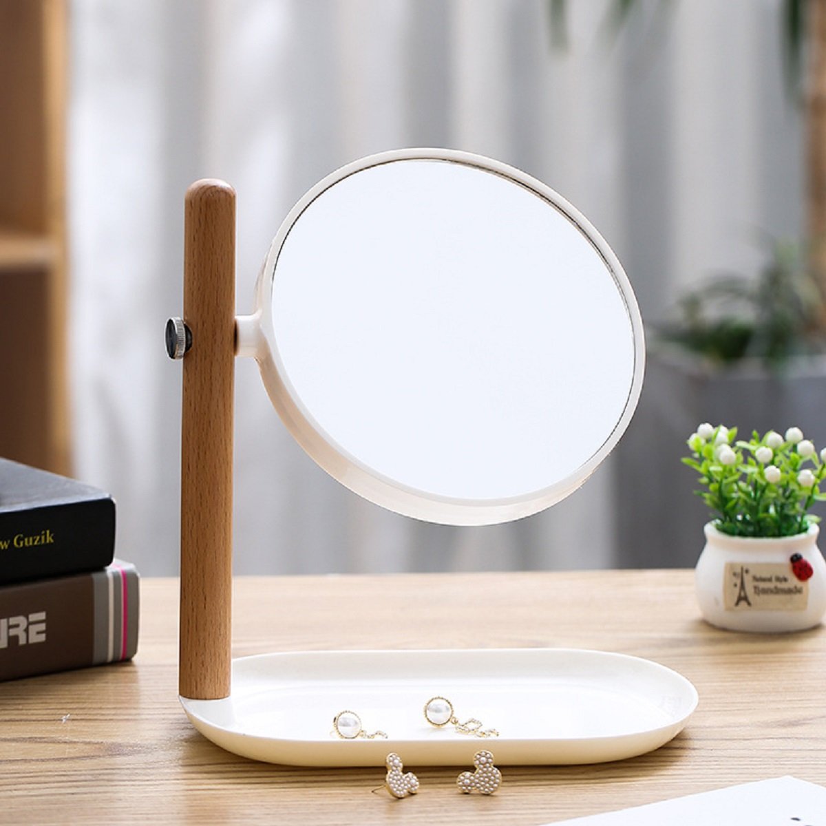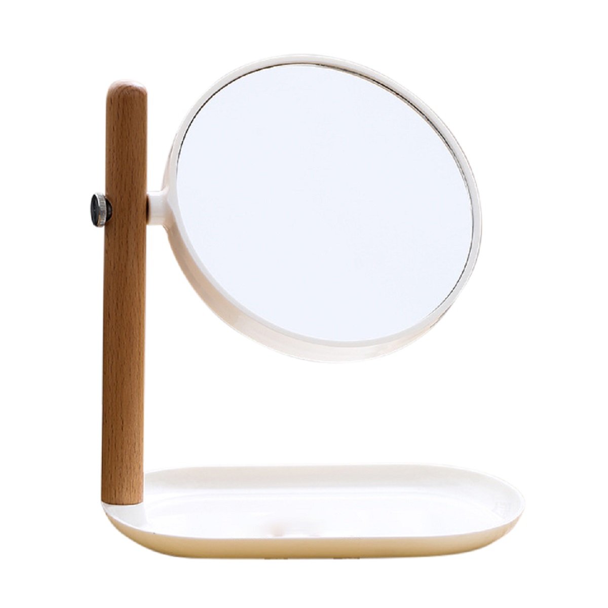 Espejo de pie redondo doble faz con alhajero