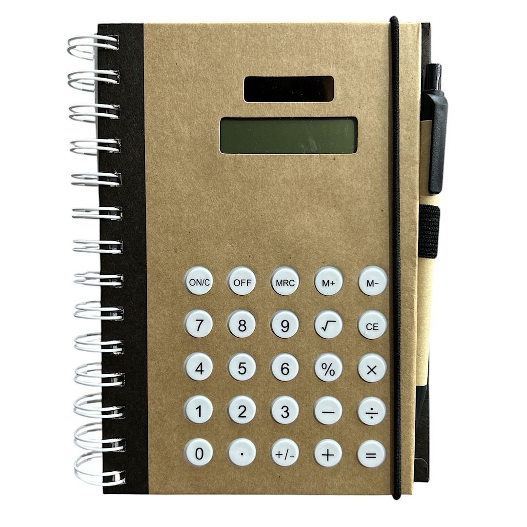 Libreta tapa dura con calculadora y lapicera