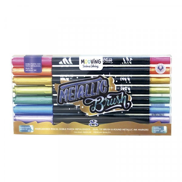 Marcador punta pincel x8 metalizados mooving