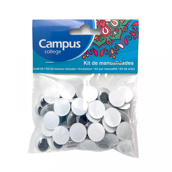 Ojitos plásticos medianos de 15 mm de diámetro para decoraciones o manualidades.
