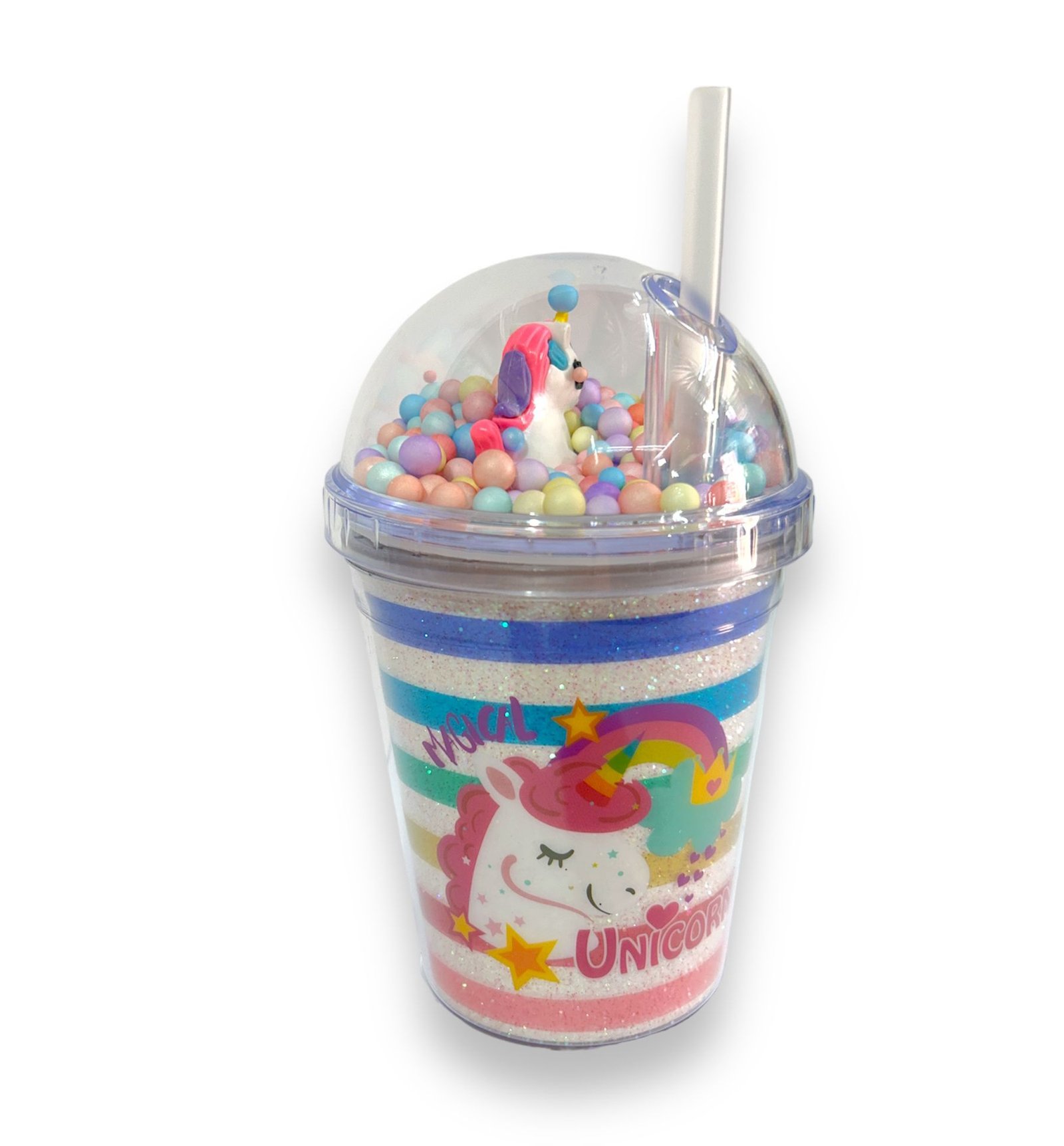 Vaso con sorbito unicornio