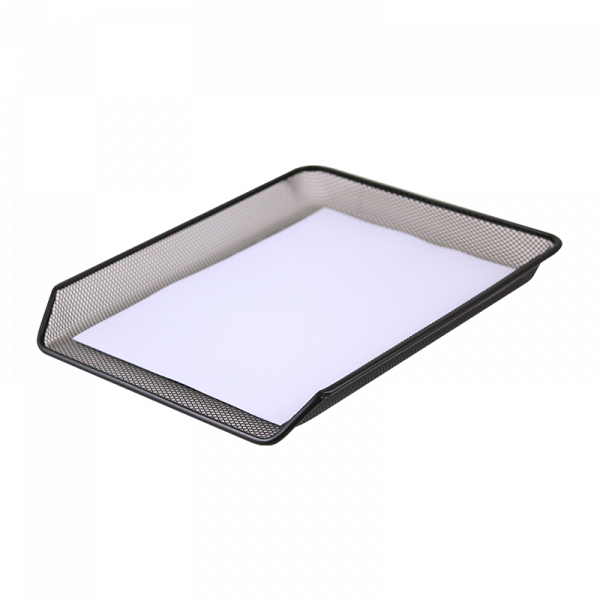 Bandeja de escritorio en metal calado para documentos.