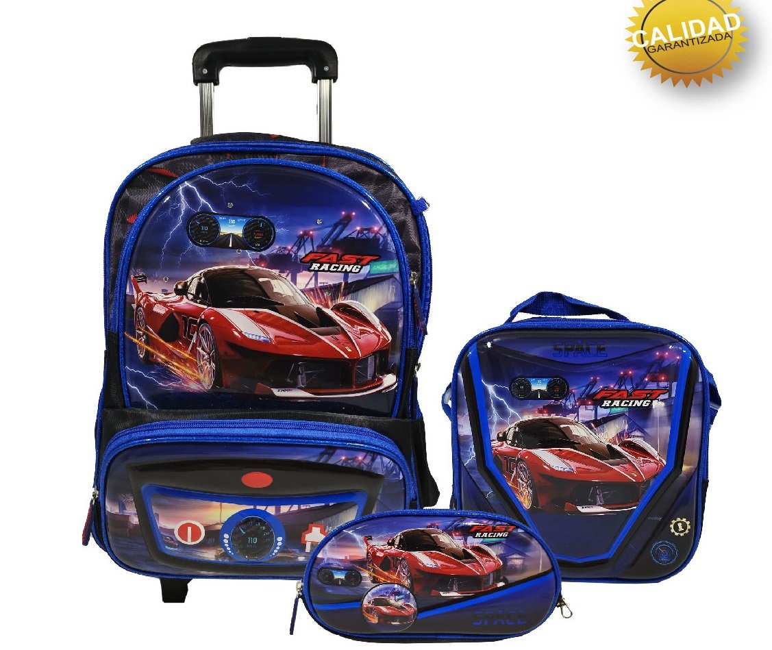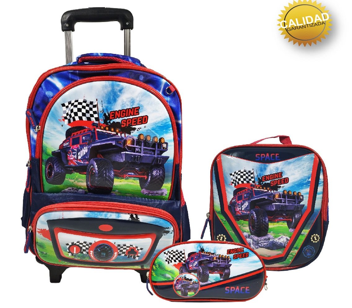 Mochila Carrito con Luces + Lunchera + Cartuchera