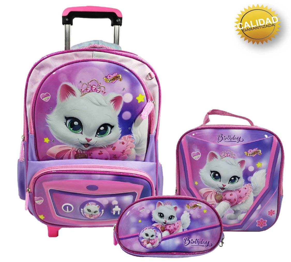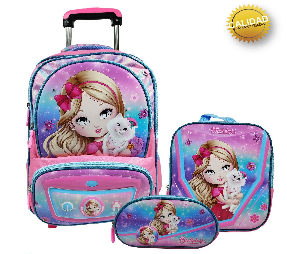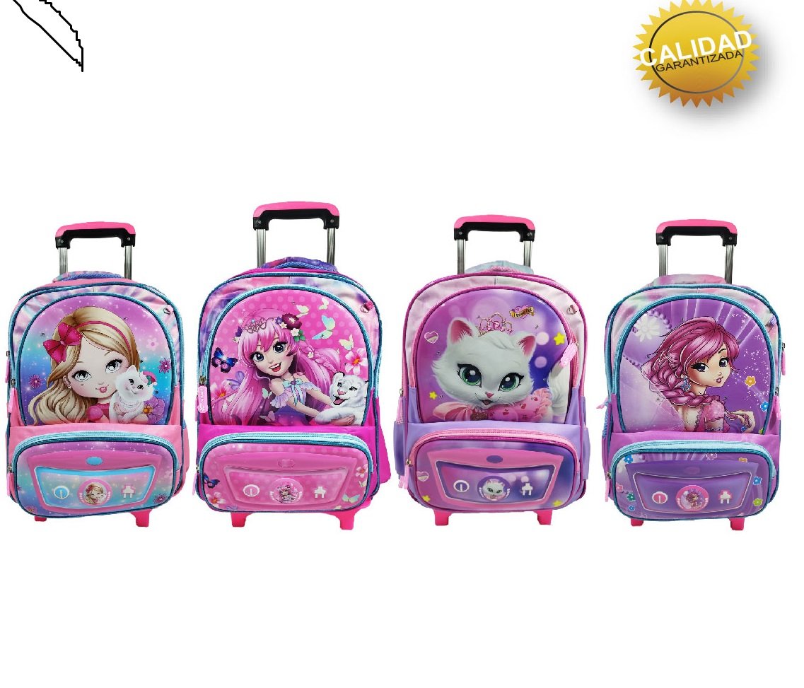 Mochila con carrito lanchera cartuchera y luz